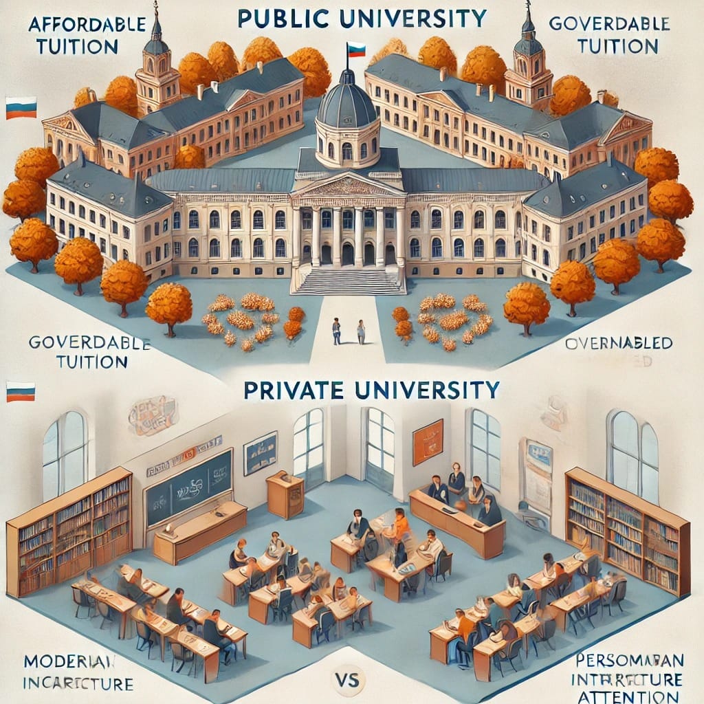 Public vs. Private Universities in Russia: Which Is Right for You? Choosing between public and private universities is one of the most significant decisions for international students considering studying in Russia. Both options offer unique benefits and challenges, depending on your priorities, budget, and career aspirations. This guide explores the key differences, advantages, and considerations to help you make the right choice. Public vs. Private Universities in Russia.